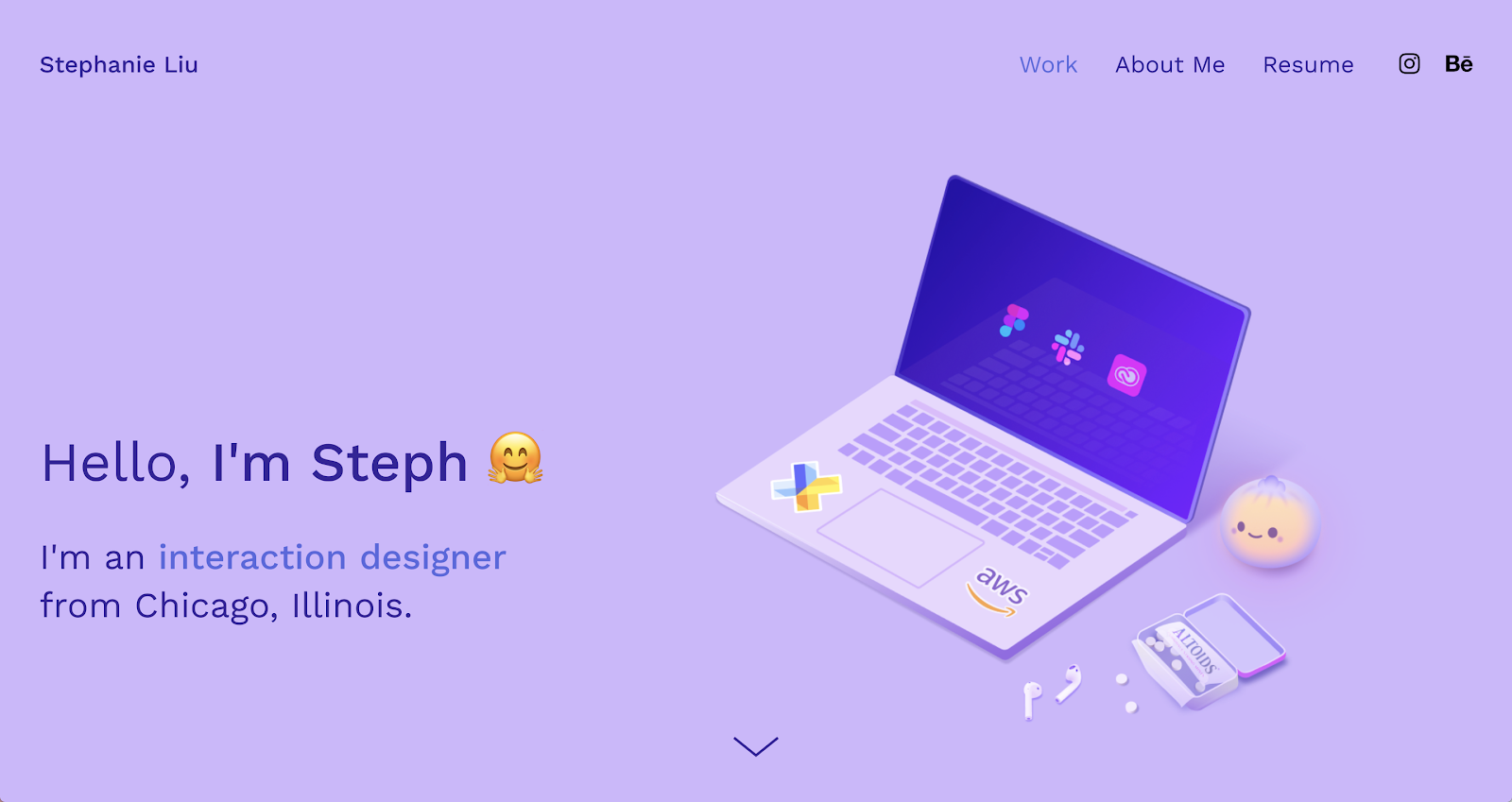 Stephanie is an interaction designer who’s interned with Amazon. Using a mix of illustration and emojis, she cleanly and colorfully lays out her design projects.